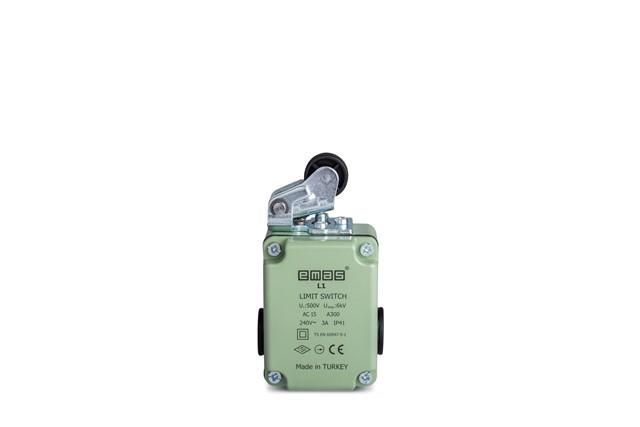 Выключатель концевой угловой однонаправленный с пластмассовым роликом Ф22мм (1НО+1НЗ) EMAS - устройство для фиксированного определения положения механизма в автоматических системах. Артикул l1k23mip111 обеспечивает надёжную коммутацию при контакте с движущимся элементом, особенно там, где важна устойчивость к механическому воздействию и минимальная нагрузка на детали.