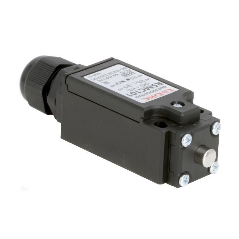 Концевой выключатель DKC (ДКС) с артикулом r5mc101 - это устройство с двумя контактами (НО+НЗ) и толкателем из пластика, предназначенное для обеспечения функций безопасности в автоматизированных системах. Его компактная конструкция и степень защиты IP65 позволяют использовать его в условиях пыли, влаги и механических воздействий.