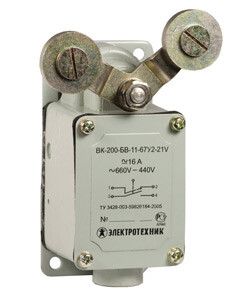 | Выключатель концевой ВК-200-БВ-11-67У2-24 V-образ. рычаг с роликом на каждом плече без сальника ход влево без самовозврата ступень 2-51мм IP67 Электротехник ET514768 | 01.03.2026 | Под заказ | 1 605,54 ₽ | шт. | от 30 дней |