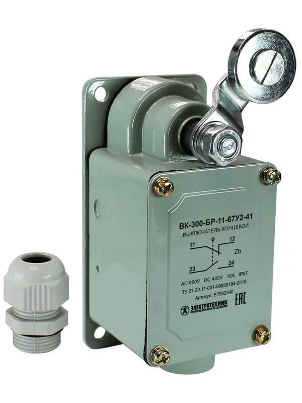 Выключатель концевой ВК-300-БР-11-67У2-41, рычаг с роликом, сальником, ход вправо, самовозврат, ступень 4- 71мм, IP67 - ET502340 Электротехник