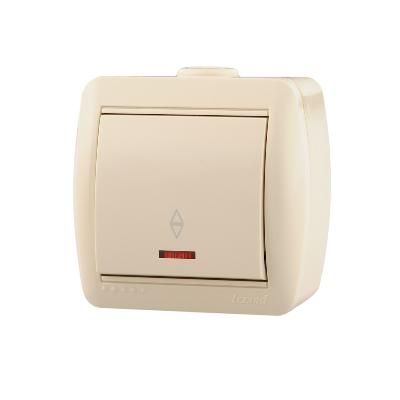 Переключатель проходной 1-кл. ОП Nata 10А с подсветкой крем. LEZARD 710-0300-114