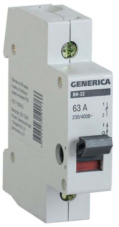 Выключатель нагрузки модульный (мини-рубильник) ВН-32 1Р 63А | MNV15-1-063 GENERICA IEK