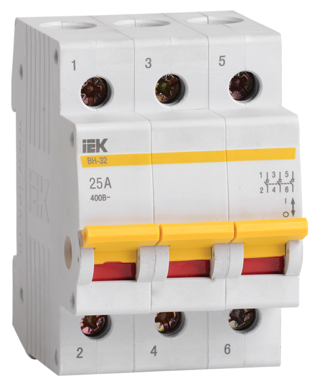 Выключатель нагрузки модульный (мини-рубильник) ВН-32 3Р 25А | MNV10-3-025 IEK