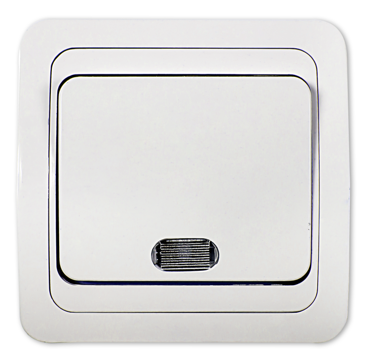 - Выключатель одноклавишный с подсветкой белый 2121 от IN HOME лучше всего использовать там, где важна эргономика, а не функциональная сложность