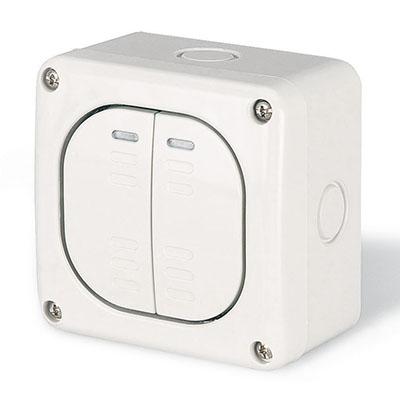 Этот выключатель используется для включения и отключения двух отдельных электрических цепей - например, групп освещения, вентиляторов или оборудования. Подходит для установки в помещениях с высокой влажностью или пылью: ванные комнаты, кухни, подвалы, производственные участки, уличные ниши. Благодаря защите IP66, устройство можно монтировать даже на открытых площадках, где возможны брызги воды или сильная запылённость.