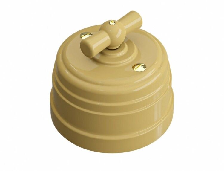 Этот выключатель предназначен для коммутации электрических цепей в двух фиксированных положениях - «вкл» и «выкл». Он работает как проходной элемент, то есть позволяет управлять одним источником света из двух точек, например, на входе и выходе комнаты. Подходит для установки в квартирах, домах, коридорах, лестницах и других местах, где требуется удобное управление освещением. Цвет песочное золото гармонирует с интерьерами в классическом, прованском или современном стиле.