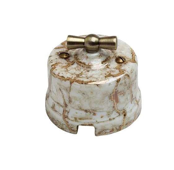 Выключатель поворотный 2-кл. ОП Лизетта 10А IP20 ретро 4 полож. керамика мрамор Bironi B1-202-09
