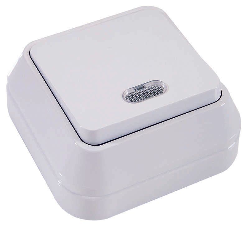 Переключатель проходной 1-кл. ОП 10А IP20 с подсветкой бел. Makel 45125