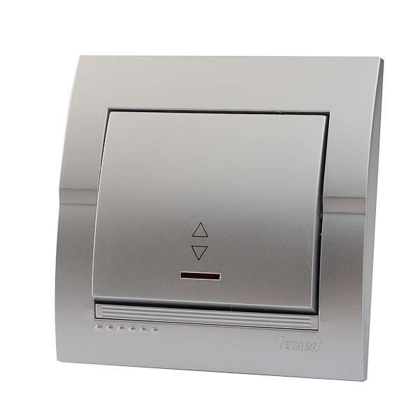 Переключатель проходной 1-клавишный 10А IP20 с подсветкой серебристый металлик от бренда Lezard, артикул 702-2828-114, предназначен для коммутации освещения из двух мест - например, у входа и у кровати в спальне. Подсветка клавиши обеспечивает удобство в темноте, а компактная конструкция совмещает функциональность и эстетику.