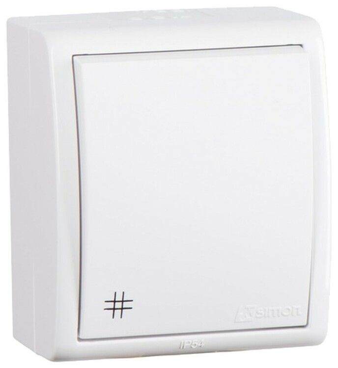 Переключатель перекрестный 1-кл. ОП Simon 15 10А IP54 250В с 3-х мест подсветкой винтов. зажим бел. 1594254-030