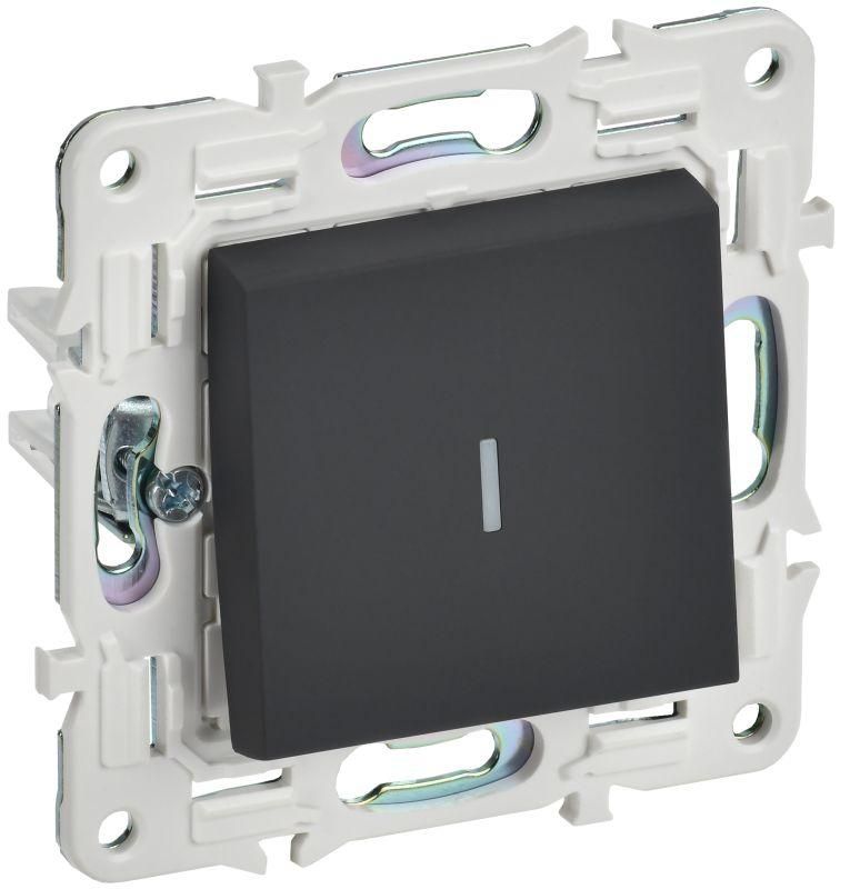 Выключатель проходной 1-клавишный с индикацией 10А графит предназначен для управления одним источником света из двух точек - например, в коридоре, на лестнице или в спальне. Индикация помогает найти выключатель в темноте: светодиод подсвечивается, когда цепь разомкнута. Подходит для бытового и легкого коммерческого использования - в квартирах, гостиницах, офисах. Номинальный ток 10 А позволяет коммутировать нагрузки до 2,3 кВт при 230 В - это достаточно для большинства LED-, люминесцентных и галогеновых светильников.