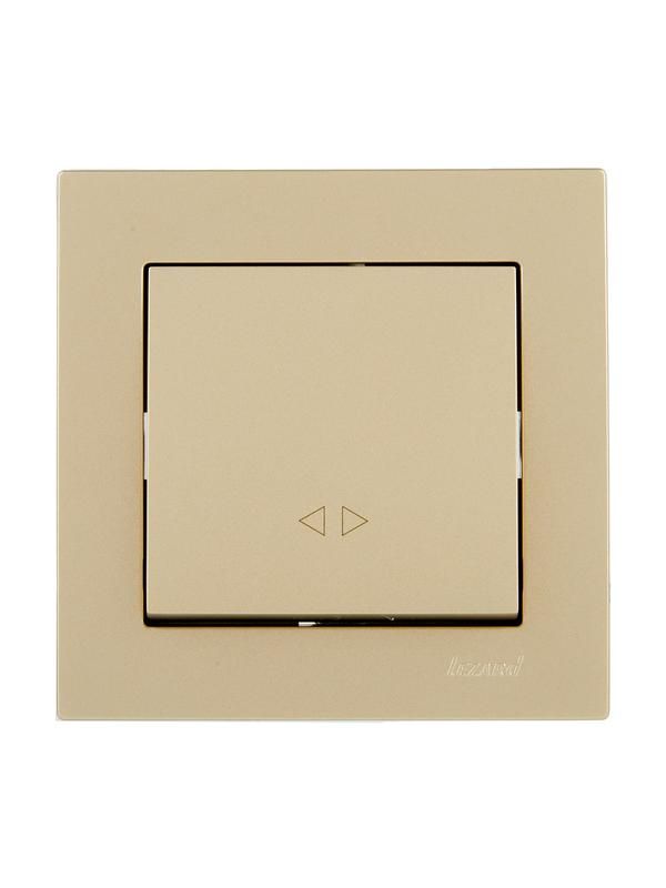 Выключатель промежуточный золото Lezard артикул 742-3688-107 предназначен для управления освещением из трёх точек - например, на лестнице, в длинном коридоре или в спальне с двумя входами. Этот элемент работает в связке с двумя проходными выключателями.