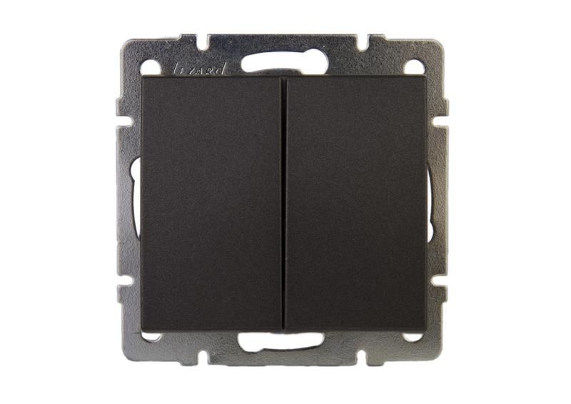 Выключатель двойной механизм черный графит матовый от бренда Lezard, артикул 703-4188-101, предназначен для коммутации освещения в жилых и офисных помещениях. Отличается компактным дизайном, надежным монтажом и устойчивостью к механическим воздействиям благодаря корпусу из поликарбоната.