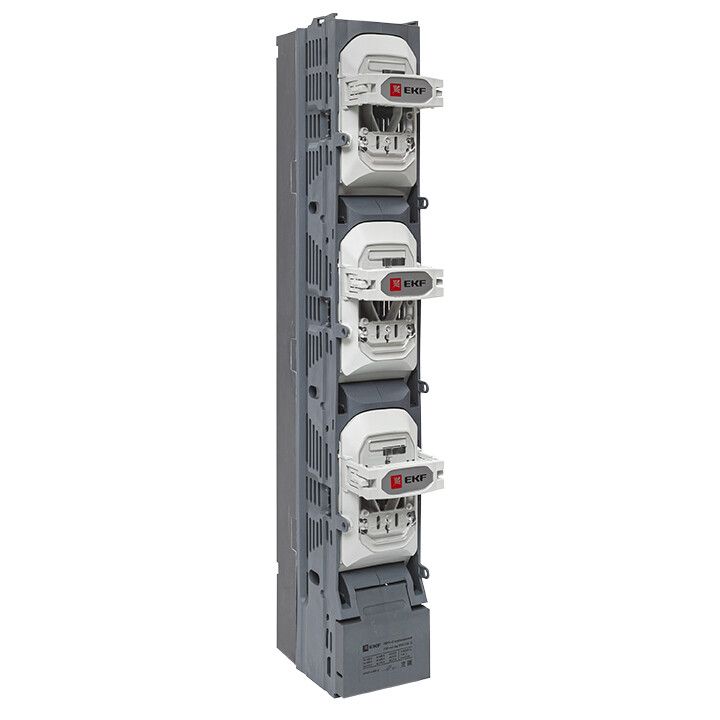 Выключатель-разъединитель УВРЭ v2 вертикальный (185мм) 400А пофазный под плавкий предохранитель (ППН) габарит 2 от бренда EKF предназначен для ручного отключения и защиты цепей переменного тока до 690 В. Этот аппарат используется в распределительных щитах и шкафах низкого напряжения, обеспечивает видимый разрыв цепи и совместим с предохранителями ППН габарита 2.