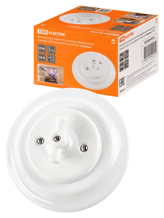 | Выключатель скрытой установки фарфоровый поворотный перекрёстный с ручкой (бантик) 10А белый «Болонь | SQ1820-0016 | TDM | 06.03.2026 | Под заказ | 1 346,54 ₽ | шт. | от 30 дней |