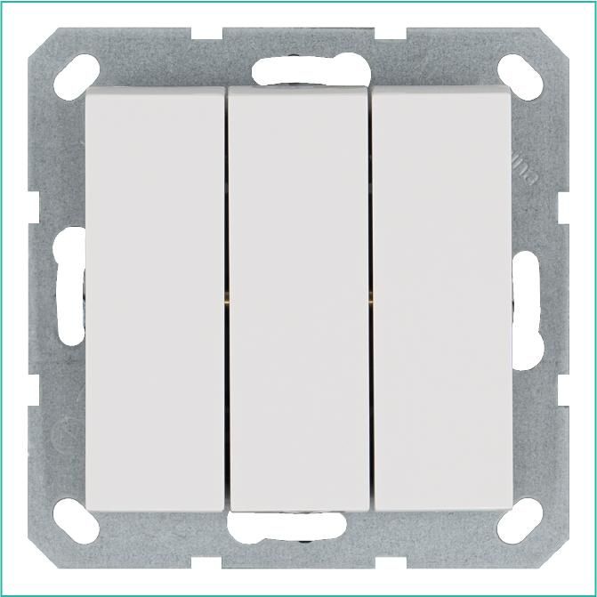Выключатель трехклавишный 10A 250V~ с накладкой, цвет белый глянцевый - G3031W Jasmart