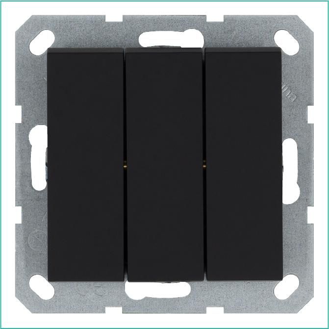 Выключатель трехклавишный Jasmart g3031pb - компактное устройство для управления тремя группами освещения или нагрузок до 10 А. Матовая поверхность с эффектом soft touch обеспечивает комфортное управление, а черный цвет гармонично впишется в современные интерьеры.
