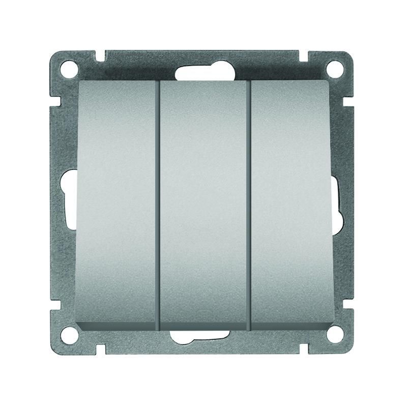 Выключатель трехклавишный UNIVersal серия Афина, с/у, 10А, 220В, серебро (еврослот), механизм - A0043-S Союз