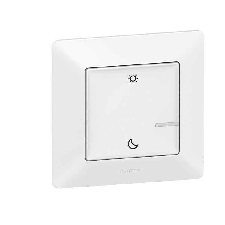 Умный беспроводной сценарный выключатель Valena Life "День/Ночь" от компании Legrand - это ключевой элемент системы домашнего комфорта. Для его работы необходимо приобрести и установить стартовый пакет умного дома. Этот выключатель позволяет задавать сценарии работы системы в соответствии с вашим режимом активности и отдыха.