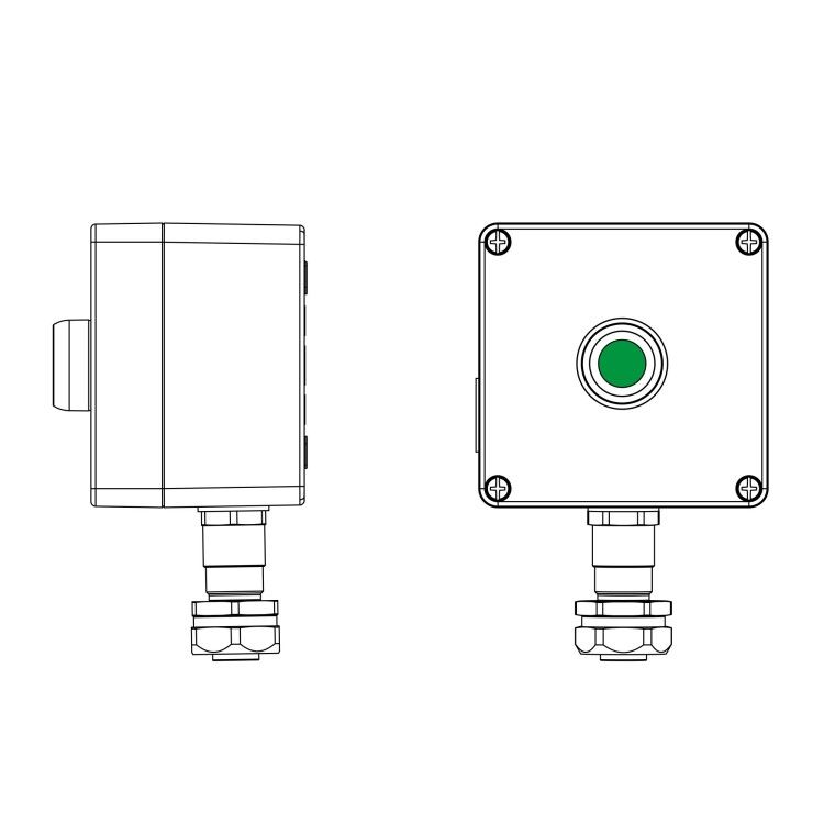 Температурный режим Т5 40 градусов Цельсия. Количество элементов управления - Контактный блок 1NC/1NO и Кнопка P1 Зеленая 1 шт. Сторона C - Взрывозащищенный кабельный ввод серии КАЕРМ для бронированного и небронированного кабеля в металлорукаве COSMEC Dn - 20 М20х1,5 d - 5,8-12мм. Никелированная латунь IP66/IP68 1 шт.