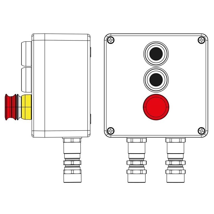 Взрывозащищенный пост управления из полиэстера CPE-P-05-(2xP1B(11)-1xP3E(11))-2xKA2MHK(C)1Ex d e IIC Т5 Gb / Ex tb IIIC T95C Db IP66/КЗ/ШЗ. Un