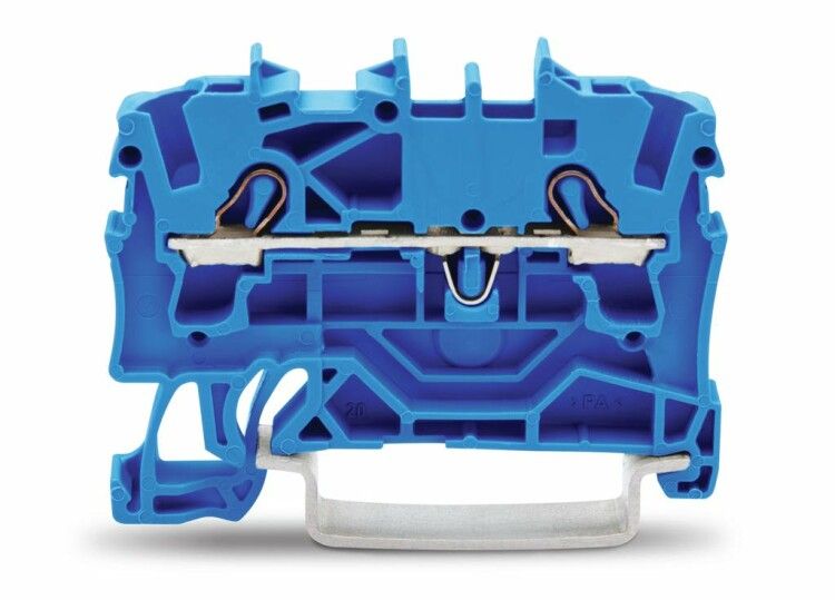 Клемма двухпроводная проходная 0.25–4 мм2 на DIN-рейку синяя для применения во взрывоопасных условиях по Ex i от WAGO (артикул 2002-1204) предназначена для надёжного соединения проводов в средах с риском возгорания или взрыва, где требуется повышенная безопасность и герметичность.