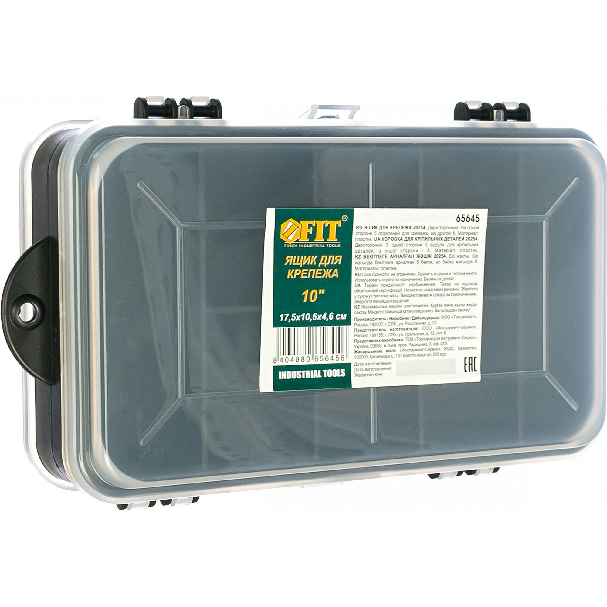 Ящик для крепежа (органайзер) двухсторонний 7'' (17.5 х 10.6 х 4.6 см) - 65645 FIT - надежный помощник для профессионалов и любителей ремонта, позволяющий удобно хранить и организовывать крепежные элементы во время работы.