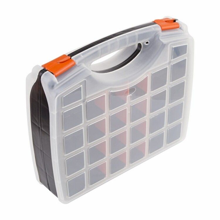 Ящик предназначен для хранения ручного инструмента, разъемов, крепежа, расходных материалов и даже рыболовных снастей. Благодаря двойному исполнению и съемным перегородкам, он удобен для сортировки мелких предметов. Применяется в гаражах, мастерских, на производстве, в сервисных центрах и дома.
