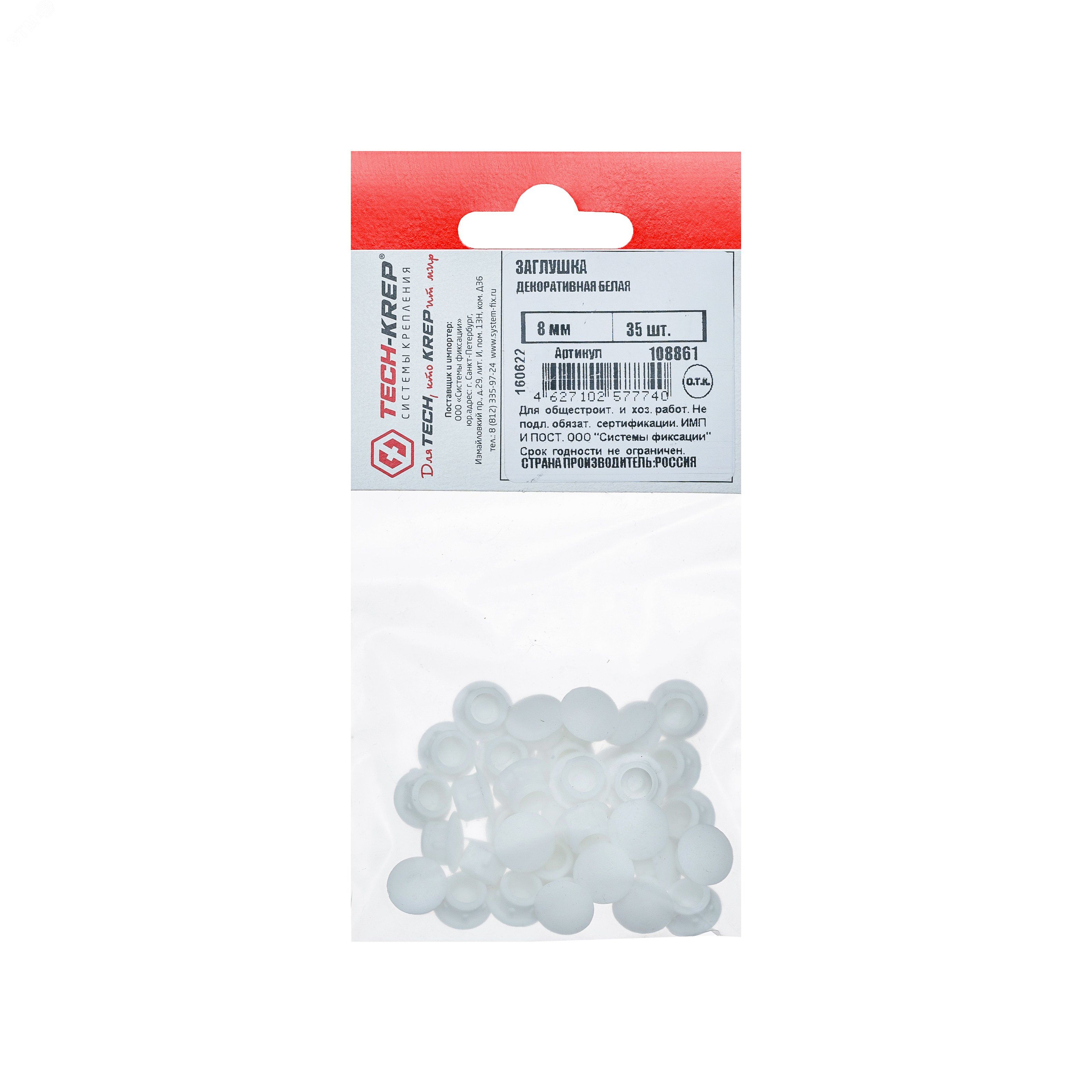 | Заглушка декоративная 8 мм белая (35 шт) - пакет | 108861 | Tech-KREP | 13.03.2026 | Под заказ | 45,67 ₽ | уп. | от 30 дней |