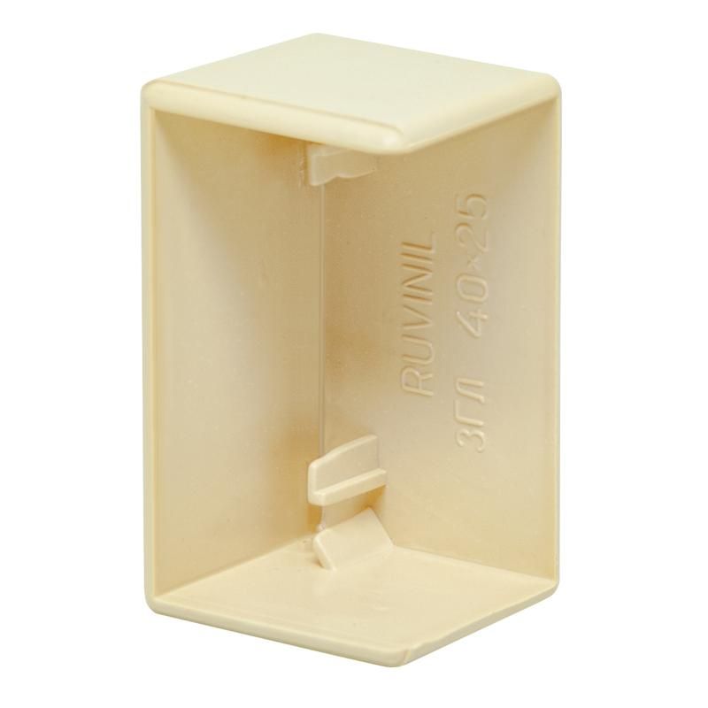 Заглушка для РКК 60х40 бежевая совместима исключительно с профилем РКК 60х40 от Рувинил. Устанавливается путём плотного вдавливания в торец профиля до щелчка - никаких болтов, саморезов или клея не требуется. Для надёжной установки проверьте, чтобы внутренняя поверхность профиля была чистой и свободной от заусенцев.