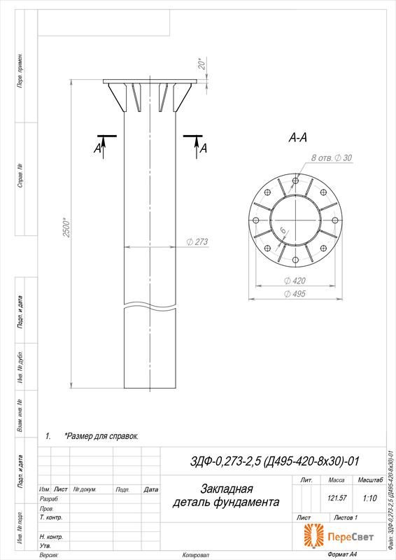Закладная деталь фундамента для силовых опор ЗДФ-0.273-2.5(Д495-420-8х30)-01 от бренда Пересвет предназначена для надёжного крепления вертикальных опор в бетонном основании. Эта закладная деталь обеспечивает устойчивую фиксацию силовой опоры на глубине до 2,5 метра, что особенно важно при монтаже в условиях повышенной нагрузки и вибраций.