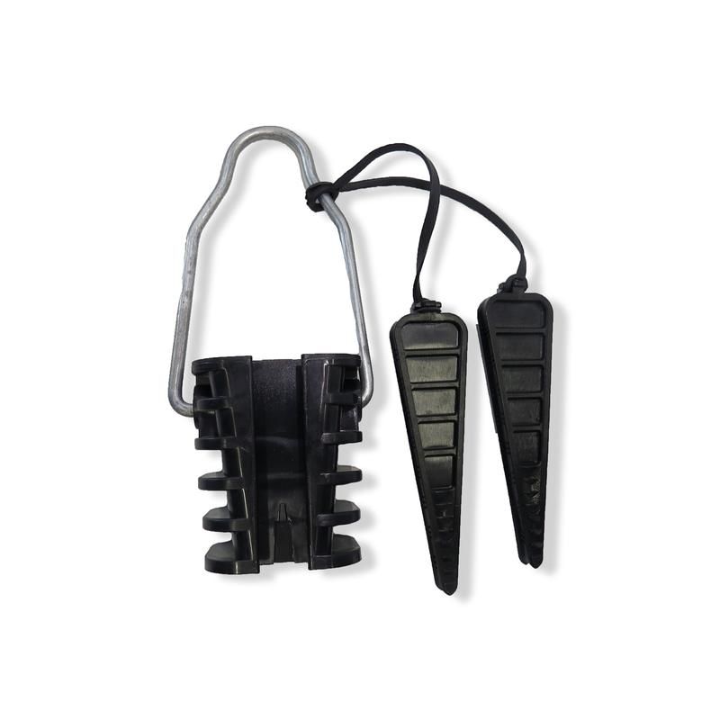 Зажим совместим исключительно с проводами СИП-4 сечением до 35 кв.мм. Монтаж выполняется без инструментов: провод заводится внутрь корпуса, после чего съемная дужка защелкивается на месте, фиксируя проводник за счет клинового механизма. Для правильной работы необходимо убедиться, что провод полностью вошел в канал зажима и дужка плотно зафиксировалась. Нельзя использовать с другими типами проводов (например, СИП-1, СИП-2, АВК).