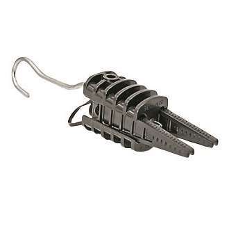 Зажим анкерный клиновой PAC 25 (2х16/4х25) совместим с медными и алюминиевыми проводами соответствующего сечения. Монтаж выполняется стационарно - через крюк зажим крепится к траверсе, кронштейну или другому несущему элементу. Клиновой механизм плотно фиксирует проводник при затяжке - не требует дополнительных инструментов кроме гаечного ключа. Изоляция предотвращает контакт с токоведущими частями опоры.