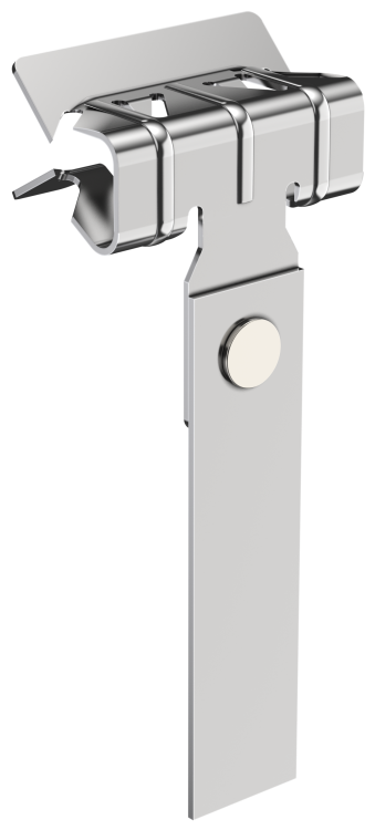 Устанавливается вручную: зажим раскрывается, помещается между двух поверхностей, затем замыкается за счёт пружины. Для работы требуется доступ к обеим сторонам металлического элемента. Диаметр ушка рассчитан под стандартные крепёжные элементы M5–M8. Не совместим с тонкими листами менее 8 мм - зажим будет проскальзывать или не сможет плотно захватить поверхность.
