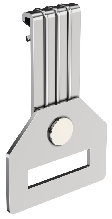 Зажим совместим с перфолентой и другими типами крепёжных планок, имеющими соответствующую форму крепёжного отверстия. Устанавливается путём вставки в щель между фланцем и основным профилем - зажим автоматически фиксируется за счёт пружины. Для надёжного соединения проверьте, чтобы толщина фланца не выходила за пределы 1–5 мм. Монтаж возможен вручную - инструменты не требуются.
