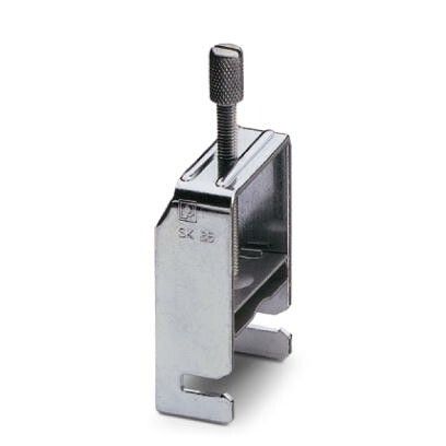 Зажим для экрана SK 35 устанавливается на DIN-рейку 35 мм. Для монтажа достаточно зафиксировать его на рейке, затем вставить в него экранирующую оплетку кабеля и затянуть винт. Подключить к заземляющей шине можно через отверстие под болт M4. Убедитесь, что экран кабеля плотно обжат - слабый контакт снижает эффективность подавления помех.