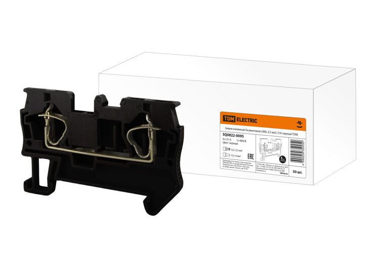 Зажим клеммный безвинтовой (ЗКБ) 2,5 мм2 31А черный | SQ0822-0095 TDM