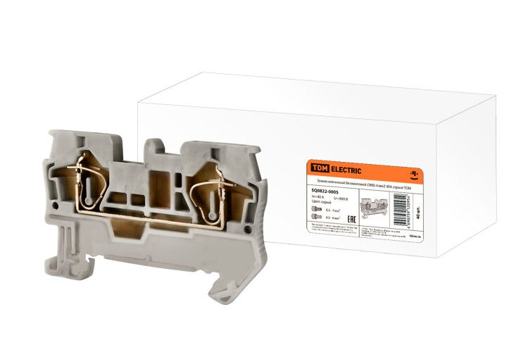 Зажим клеммный безвинтовой (ЗКБ) 4 мм2 40А серый | SQ0822-0005 TDM