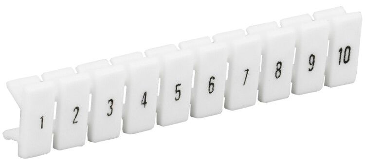 Маркеры для кабельной продукции КПИ-1,5 мм2 с нумерацией №№ 1-10 совместимы исключительно с клеммами серии КПИ. Установка происходит путём вставки маркера в специальный паз на корпусе клеммы - защёлка фиксирует его плотно, без люфтов. Каждая из 10 площадок можно отделить от полоски, чтобы использовать только нужные номера. Монтировать следует после окончательной затяжки проводов - перед установкой маркера проверьте, что провод не выступает за пределы клеммы.