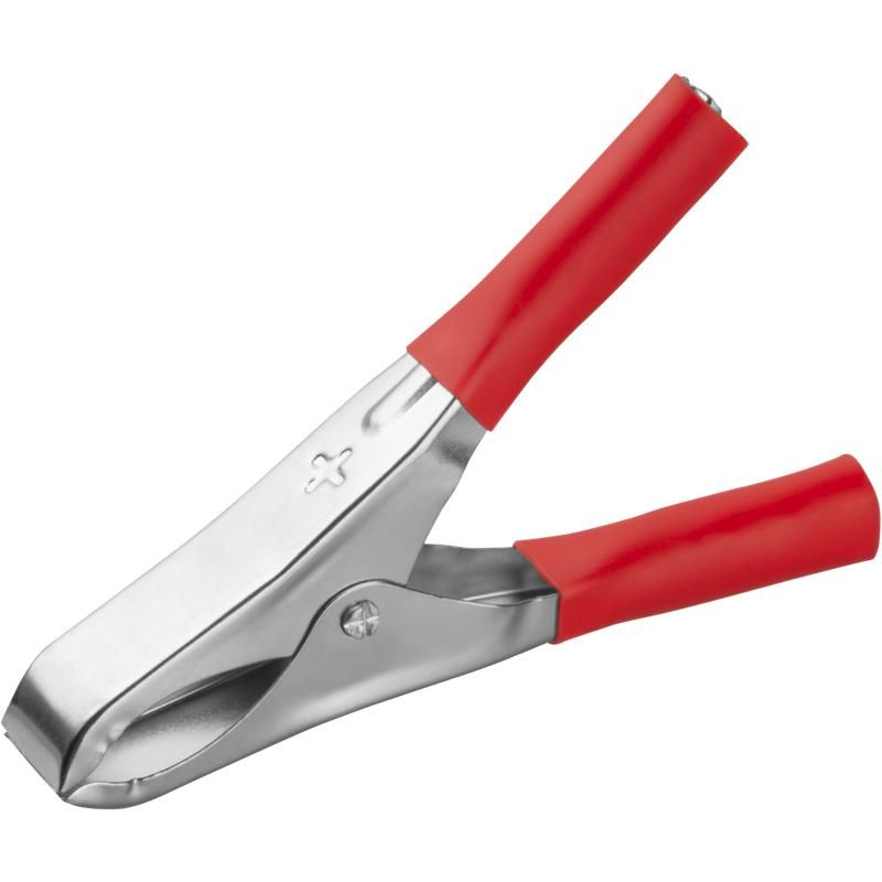 Габариты 90×180 мм указывают на длину и ширину контактной части - это позволяет захватывать толстые провода или шины. Красный цвет помогает быстро отличить этот зажим от других в наборе.