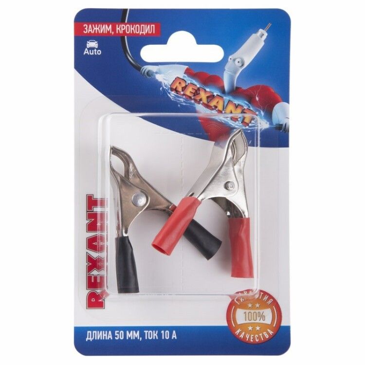 Зажим крокодил, длина 50 мм, ток 10 А, 2 шт. от бренда REXANT (арт. etm06-0145-b2) - это простое и надёжное средство для временного подключения проводов при тестировании, ремонте или сборке электрических цепей. Удобен для быстрого монтажа и демонтажа, особенно когда требуется доступ к точкам без пайки.