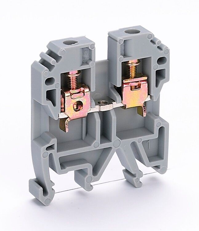 Зажим наборный 35А 4 мм2 ЗН-101 серый устанавливается на стандартную DIN-рейку 35 мм - просто защёлкивается и фиксируется. Для работы необходима металлическая перемычка (пластина), которая продается отдельно и должна быть совместима с конструкцией ЗН-101. Установка проводов выполняется через верхние входы: оголённый конец провода вставляется в гнездо, после чего затягивается винт. Благодаря насечкам внутри клеммы достигается двойной обжим - провод зажимается как по бокам, так и снизу, исключая проскальзывание. Флажок под зажимом предупреждает неверную установку: если провод не дошёл до зажима, он не сможет войти глубже.