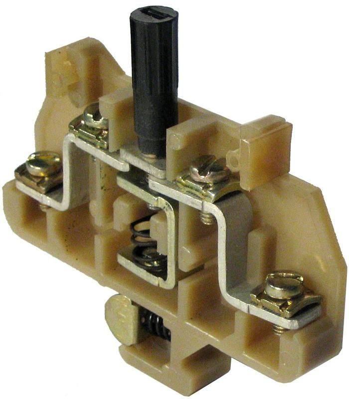 Зажим имеет один уровень и одну клемму на уровень, что облегчает монтаж и подключение проводов. Его ширина/шаг подключения составляет 10.5 мм, что позволяет использовать провода с сечением от .35 до 4 кв.мм.
