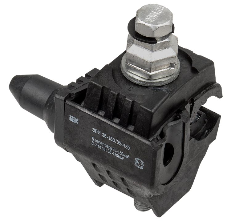 Зажим ответвительный изолированный ЗОИ 35-150/35-150 (P70/P95/P4X-150D) от IEK предназначен для безопасного ответвления тока от основного силового кабеля без демонтажа изоляции - идеально подходит для монтажа в воздушных ЛЭП и на столбах. Артикул uza-11-d35-d150-1 соответствует модели с номиналом 35–150 мм2.