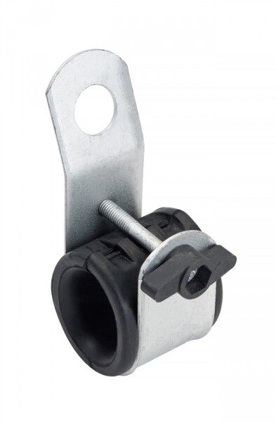 Зажим PS470 4x70 мм2 устанавливается на вертикальные штыри опор или специальные кронштейны с резьбой М22. Шарнирный механизм позволяет свободно поворачивать кабель при изменении направления трассы, снижая напряжение в точках изгиба. Для монтажа достаточно затянуть гайку до упора - контроль момента не требуется. Убедитесь, что диаметр штыря соответствует резьбе М22, и проверьте целостность изоляции провода перед установкой.