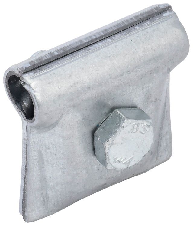 Зажим совместим с любыми круглыми проводниками из стали, меди или алюминия диаметром от 6 до 12 мм. Монтируется путём фиксации на уже установленное устройство - например, на опору, кронштейн или штыревую анкерную точку. Для сборки достаточно зафиксировать проводник внутри зажима и закрутить болт. Нельзя использовать для крепления к стене или кровле напрямую - требуется предварительная установка базового элемента.