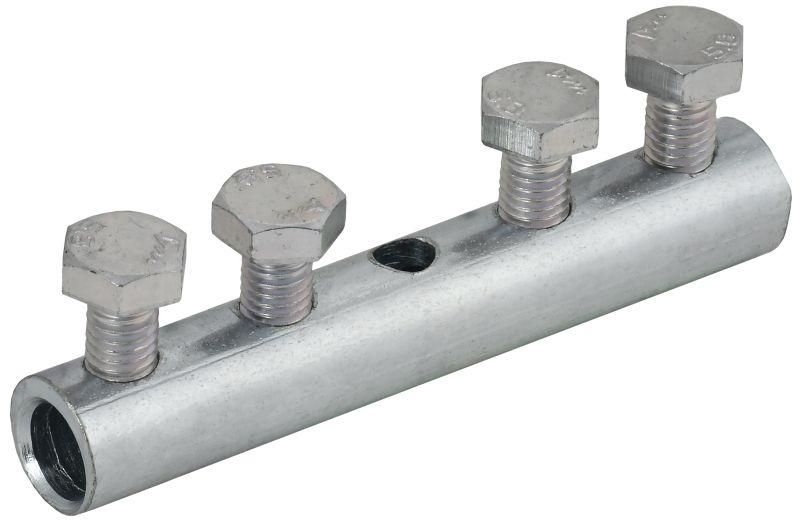 Зажим совместим с круглыми медными или стальными проводниками диаметром 6–10 мм. Для установки необходимо зачистить поверхность провода от оксидов, вставить его в оба торца зажима и затянуть болты равномерным моментом. Установка выполняется без инструментов специального назначения - достаточно обычного ключа. Гильза зажима имеет внутреннюю форму, обеспечивающую плотный контакт с проводником по всей длине.
