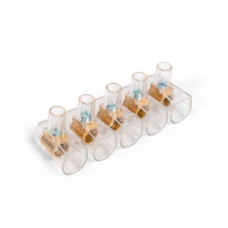 Корпус выполнен из самозатухающего поликарбоната класса V2, что снижает риск распространения пламени при перегреве. Прозрачная крышка обеспечивает контроль состояния контакта без вскрытия. Напряжение 400 В и ток 40 А соответствуют требованиям для бытовых и промышленных сетей переменного тока. Соединители покрыты лудом - это защищает от окисления и повышает долговечность контакта.