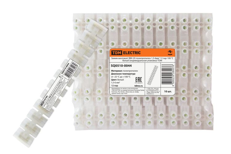 Зажим винтовой ЗВИ-20 полипропилен 1,5-6мм2 12пар 100°С белый (индивидуальная упаковка) | SQ0510-0044 TDM