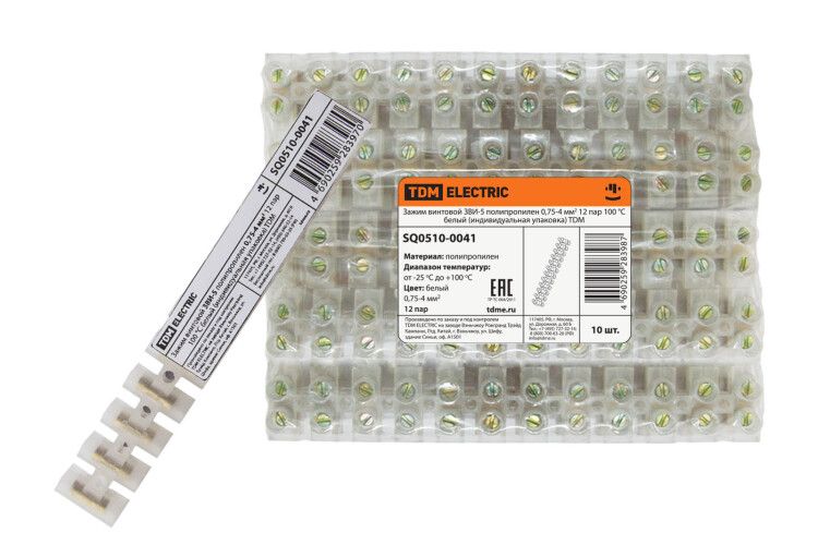Зажим винтовой ЗВИ-5 полипропилен 0,75-4мм2 12пар 100°С белый (индивидуальная упаковка) | SQ0510-0041 TDM